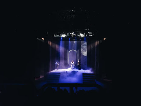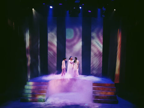 สีม่วง สีฟ้า ซึ่งเป็นสีหลักของละครเวทีเรื่องนี้นั่นเอง